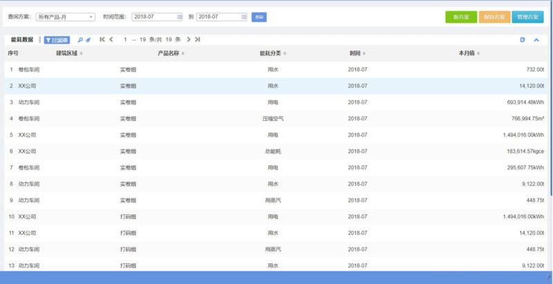 功能介绍:此功能主要满足用户对设备的历史能耗进行多角度查询的需要,允许用户自行定制查询条件,并支持自定义查询方案的编辑,手动录入和自动计算的数据都在查询的范围之内。