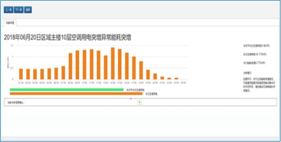 从车间区域/设备能耗量值的角度进行诊断,包含用能区域/设备能耗各时段数据、能耗限值、当日能耗总量,月平均日能耗总量、本日能耗突增量、突增原因、及问题属性等。